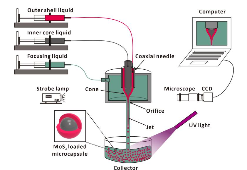 图1 LDCFF技术生产MoS2微胶囊的实验装置。