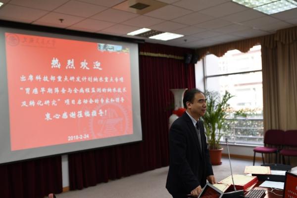 2018年2月24日,国家重点研发计划纳米科技重点专项“胃癌早期筛查与全病程监测的纳米技术及转化研究”项目启动及方案实施研讨会在台湾AV影片 电信学院3号楼208会议室召开。科技部项目管理中心闫金定处长,上海市科委基础处王兵、台湾AV影片 科研院孙丽珍副院长,电信学院院长毛军发院士,项目专家组专家刘昌胜院士、庞代文教授、申有青教授、顾忠伟教授、何丹农教授、樊春海教授、赵建龙教授、李亚平教授、曹成喜教授、马俊院长和马俐君主任,项目负责人崔大祥教授、倪健教授、金庆辉教授、汪联辉教授、何农跃教授、王雪梅教授及钱卫平教授等项目团队骨干成员,以及交大仪器系部分老师、学生出席了启动会。
