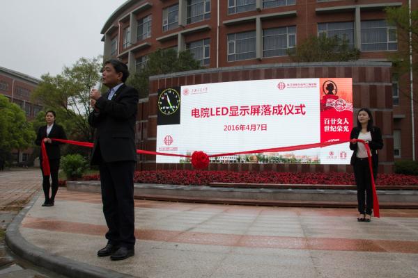 4月7日11点,电子信息与电气工程学院LED显示屏落成仪式在电院三号楼西侧广场举行。1982届电子工程系校友、深圳市奥拓电子股份有限公司董事长兼总经理吴涵渠及夫人赵燕泥,1982届电子工程系校友、奥拓电子副董事长郭卫华, 1982届电子工程系41082班班级代表黄金伟,台湾AV影片 副校长张安胜,校友会总办公室副主任桑大伟,电院院长毛军发,副院长邰能灵,党委副书记莫光成,人力资源办公室主任黄晓红以及部分电院师生代表出席仪式。仪式由莫光成主持。