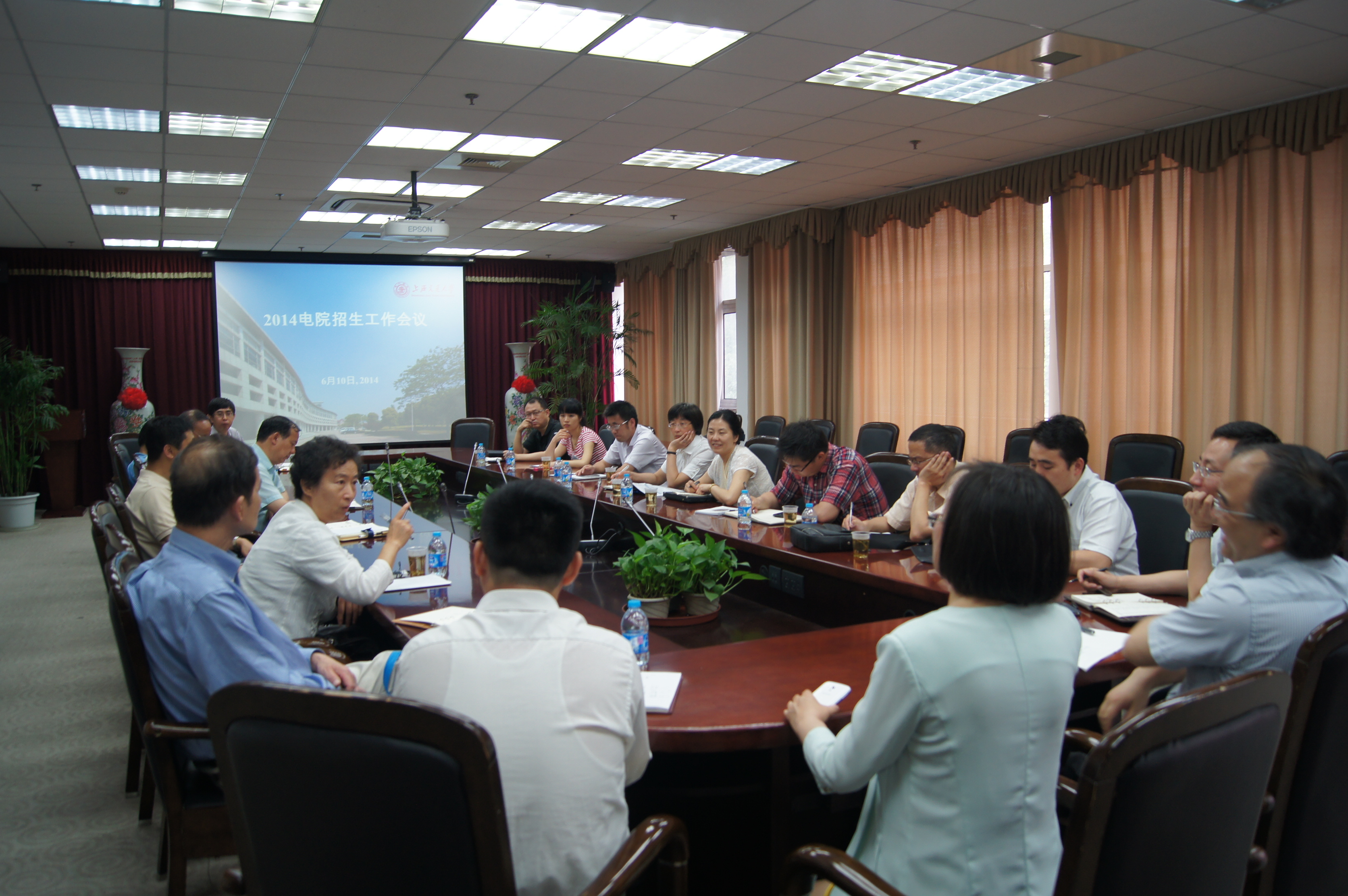6月10日上午,2014年台湾AV影片 电子信息与电气工程学院本科生招生工作会议在电院群楼3-208会议室顺利召开。院长毛军发、院党委书记苏跃增、副院长李少远、院党委副书记、工会主席莫光成以及即将奔赴北京、重庆、四川、海南等六省市地区的一线招生教师代表出席了会议。