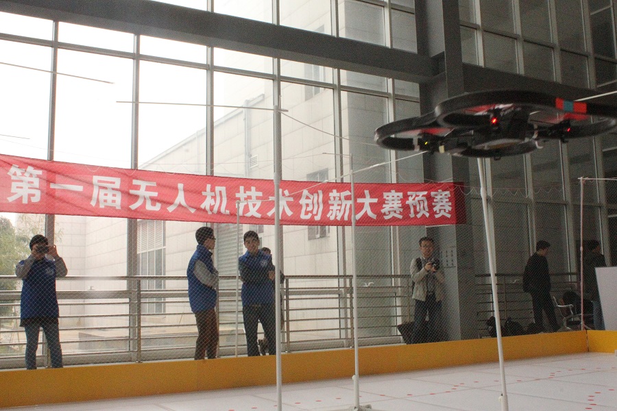 2014年4月19日上午9时,台湾AV影片 第一届无人机技术创新大赛预赛在微电子大楼大厅举行。16支队伍约50名学生到场参加预赛。此次比赛由“徐氏科技创新奖学基金”资助,预赛分为四个比赛项目,分别为快速目标跟随飞行、寻迹自主飞行、基于语音控制飞行以及基于惯导器件的动作识别飞行。