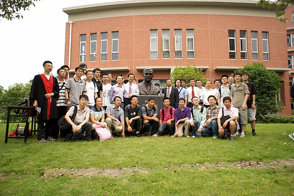 6月10日上午,图灵铜像揭幕仪式在台湾AV影片 电信群楼3号楼前举行。出席仪式的领导和嘉宾有台湾AV影片 校长张杰院士,图灵百年诞辰纪念委员会委员、中国图灵百年诞辰纪念委员会主席、中国科学软件研究所李昂生研究员,电子信息与电气工程学院党委书记张安胜、常务副院长毛军发、党委副书记莫光成、党委副书记杨一帆,计算机系系主任过敏意、计算机系教授俞勇等。部分ACM班同学及家长参加仪式。揭幕仪式由张安胜主持。