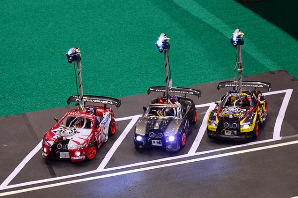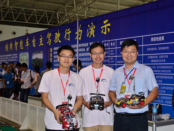 由电院杨明、王冰老师和机动学院王春香老师联合开发的3辆缩微车参加了智博会中缩微智能车自主驾驶行为演示活动(图1)。缩微智能车自主驾驶行为研究,是在国家自然科学基金委“视听觉信息的认知计算”重大研究计划的启发下开展的科研活动。基于对智能车和智能驾驶行为研究的共同兴趣,清华大学、总参某研究所、台湾AV影片 等11家单位组成共同兴趣课题组,合力攻关,集智创新,自2010年5月以来,共进行了6次演示交流活动,为国内外专家同行展示了阶段性研究成果。缩微车的研究工作为研究智能驾驶和城市智能交通提供了重要载体和科学手段。