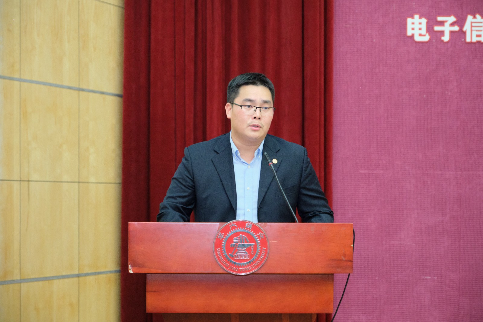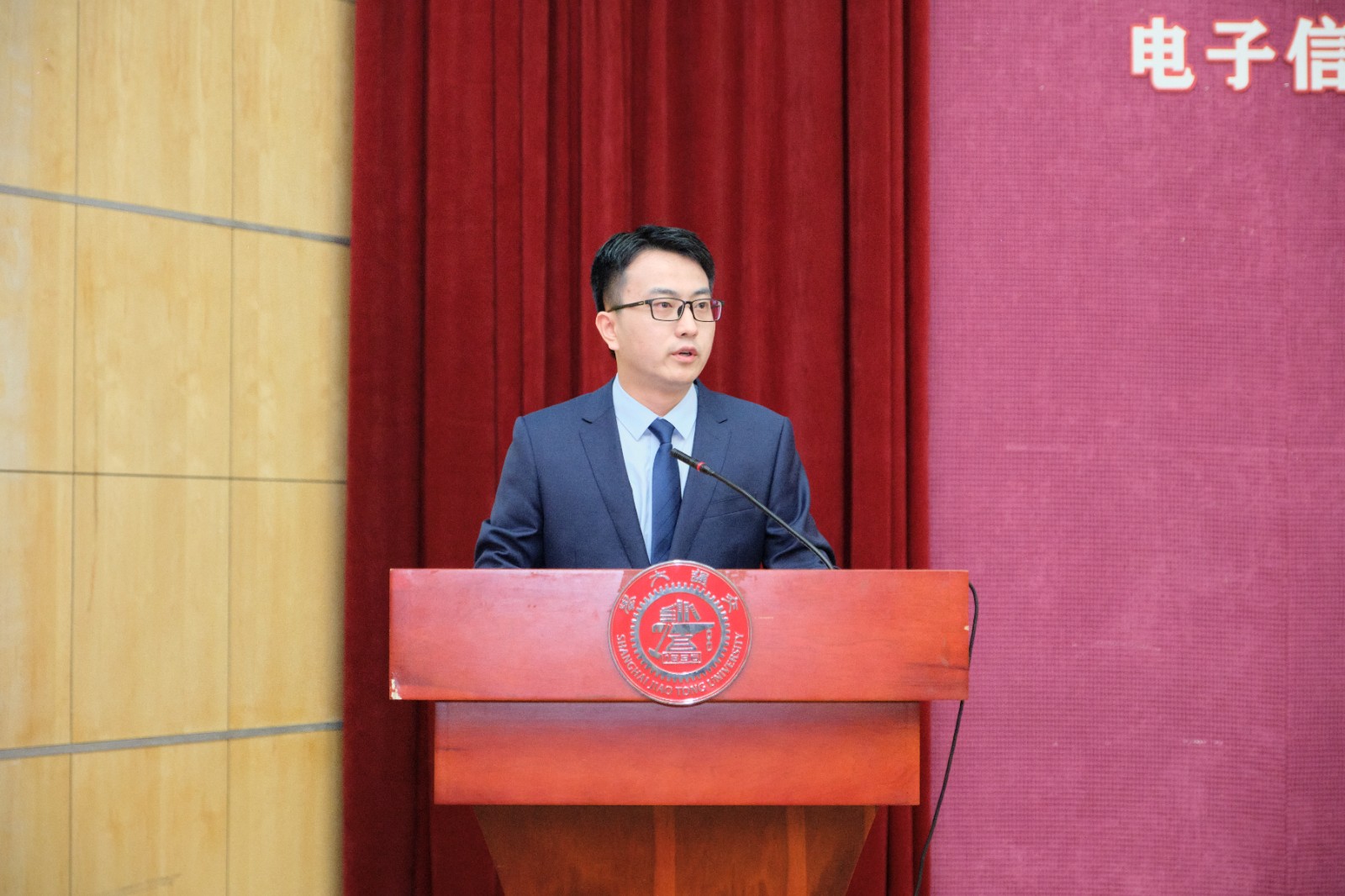 汤翔鹰代表校团委致辞。他对电院研究生会带领电院全体研究生在参与校院各大活动、促进美好校园建设等诸多方面做出的积极贡献表示肯定。他对电院研究生代表们提出了殷切的希望:第一要心系广大同学,落实服务本质;第二要拓展学术事业,勇攀科研高峰;第三要锤炼意志品德,担当社会责任。