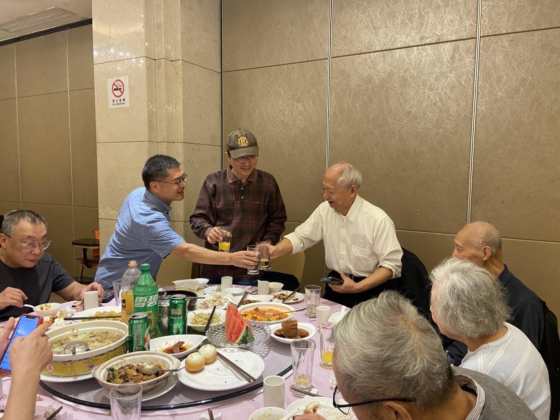 用餐期间,严正教授为每位退休教师敬茶,感谢广大老教师们为院系发展所做出的突出贡献,并向他们致以诚挚的节日祝福,祝愿大家身体健康,福寿绵长,幸福美满。