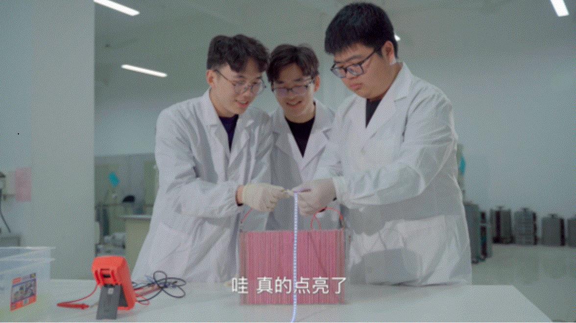 本次汇演实验从细微处出发,利用生活中常见的水果制作了简易的电池,再回到电池的原点——伏打电堆,结合原创的实验器材,辅以简化直观、妙趣横生的动画,全面展示了活泼性不同的金属在电解液中得失电子的过程。实验同时以2022年北京冬奥会使用的氢能源汽车为切入点,展示了氢燃料电池的反应原理。环环相扣的电气科普实验,在叙述电池储能的技术发展史的同时,生动阐明了电池储能的科学内涵。