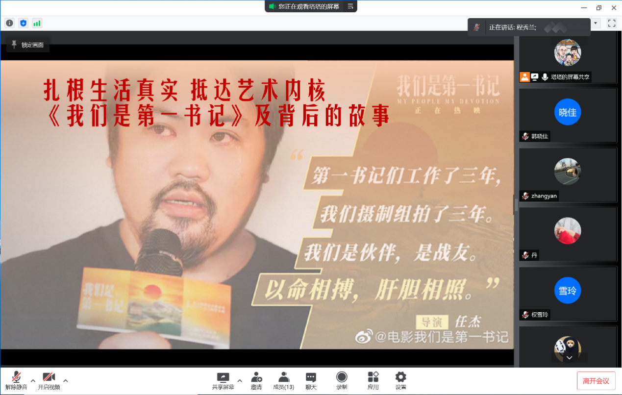 最后,支部委员韩晓佳讲述了这部电影的艺术特色和主创团队背后的故事。电影《我们是第一书记》作为对脱贫攻坚这段中国伟大创举的历史予以空前的艺术呈现,无论是其在中国特色社会主义新时代大背景下的价值意义、在人类命运共同体畅想中的文化人类学价值,还是新闻电影融合创新的表现手法,真实镜像与诗化意象有机融合的美学追求等都值得称道。它是脱贫攻坚战场上的精神丰碑,是为下一代留下可供追寻和回望的脚步与精神,是一部彰显崇高信仰力量、弘扬中国精神的丰碑式作品。除此之外,韩晓佳还向各位党员同志分享了这部影片的幕后故事,当讲到主创团队跟随第一书记亲历扶贫一线,坐在轮椅上也要坚持拍摄,并主动将工作酬劳用做扶贫工作的时候,党员同志纷纷表示,“这就是精神的力量,一个优秀的人,可以影响并带领很多人,一起走向优秀”。
