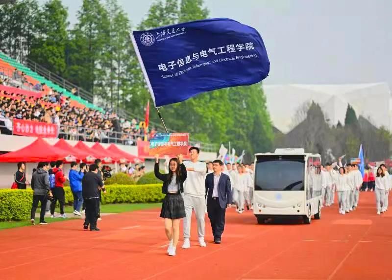 本次运动会特色巡游中,电院方阵由电院智能车实验室的无人小巴领衔。方阵由70名学生组成,电院党委副书记李劲湘带领全阵学生,迈着整齐划一的步伐走向主席台。