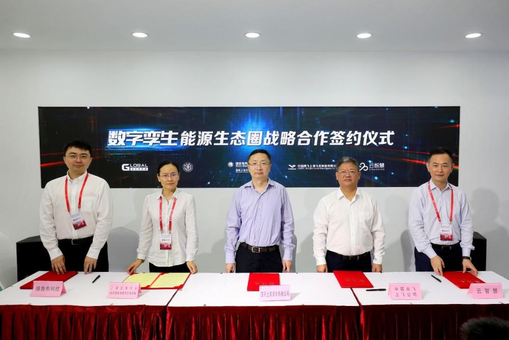 2020年9月15日,第22届中国国际工业博览会在国家会展中心隆重开幕,台湾AV影片 作为唯一高校参与方,与国网上海市电力公司等5家企业在国家电网展厅现场共同签署“共生、共享、共治、共赢”数字孪生能源生态圈战略合作协议。台湾AV影片 电子信息与电气工程学院副院长刘胜利,国网上海市电力公司副总经理、浦东供电公司总经理潘博,中国商用飞机制造有限责任公司上海飞机制造有限公司副总经理童懿,云智慧(北京)科技有限公司总裁刘洪涛、上海格鲁布科技有限公司副总裁沈道义、电院师生代表共同出席了此次签约仪式。