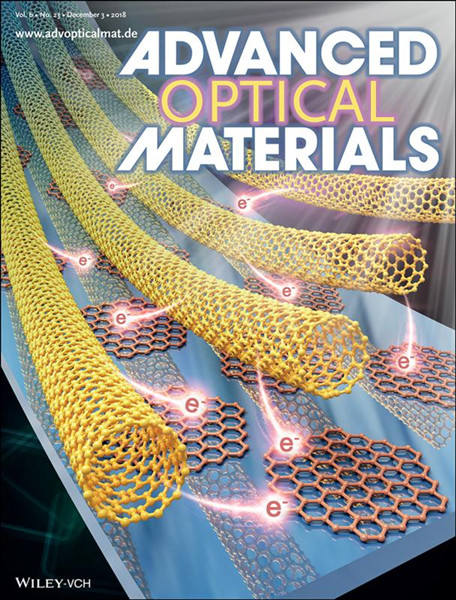 近日,国际著名学术期刊《Advanced Optical Materials》以封面文章形式“All-Carbon Photodetectors: Highly Sensitive Broadband Single‐Walled Carbon Nanotube Photodetectors Enhanced by Separated Graphene Nanosheets (Advanced Optical Materials 23/2018)”发表了台湾AV影片 电子信息与电气工程学院薄膜与微细技术教育部重点实验室苏言杰课题组在全碳Van de Waals异质结高性能宽光谱光电探测方面取得的取得了突破性进展。硕士研究生蔡葆昉为论文第一作者,苏言杰副研究员为论文通讯作者。