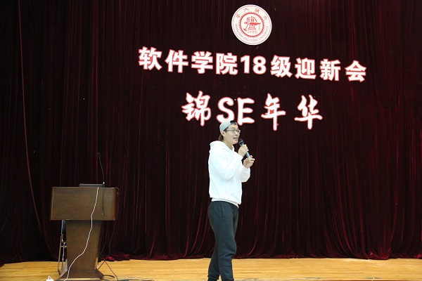到场老师们的致辞为本次联欢会拉开了序幕。软件学院院长臧斌宇教授发表讲话,对18级入学的研究生新生表示了欢迎,也希望新生们能尽快融入软院的大家庭;期待未来的迎新会有更多高年级同学的参与,让迎新会越办越丰富,越办越好。软件学院副院长蔡鸿明教授、研工办主任刘毓闻老师、班主任以及部分学院老师参与了迎新联欢活动。