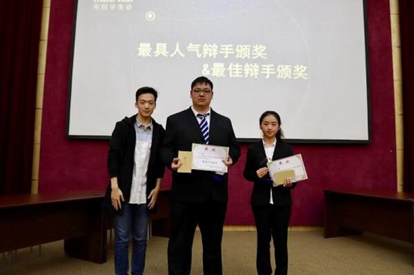 最终,经过评委团的评议,正方在这场思辨之论中更胜一筹,获得了此次辩论赛的冠军,正方三辩邱月淇获得最佳辩手称号。经过现场观众的投票,正方四辩孙建松获得最具人气辩手称号。颁奖阶段,资深辩手李晋雷为邱月淇和孙建松颁发最佳辩手和最具人气辩手奖状。辛熙锴老师为亚军队伍颁奖,肖汉老师为获胜队伍颁发冠军奖杯。