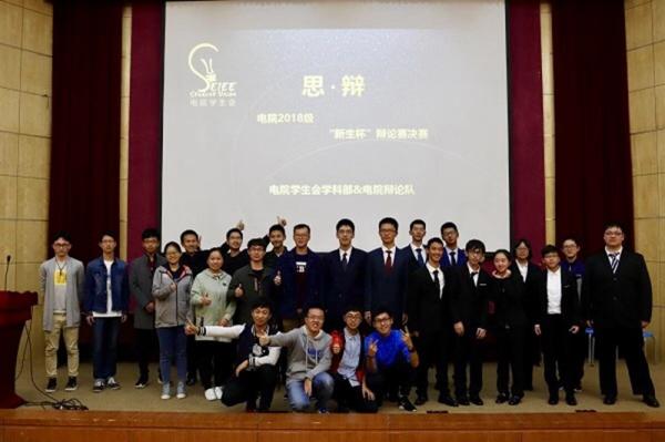 2018年10月19日晚,电子信息与电气工程学院2018级“新生杯”辩论赛决赛在微电子大楼报告厅举行。电院2018级年级组长肖汉,电院2018级新生思政辛熙锴作为嘉宾莅临比赛现场。来自电院辩论队的李晋雷、何家宁、王奕璇、任祖宏、任洁作为本次比赛的评委出席。同时,本场辩论赛吸引了大量同学前来观看,现场气氛十分热烈,座无虚席。