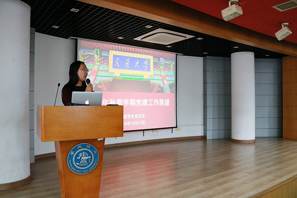 会上田怡萌对上学期主题党日、暑期社会实践、本学期开学季工作进行总结回顾,展望新学期学生党支部工作。