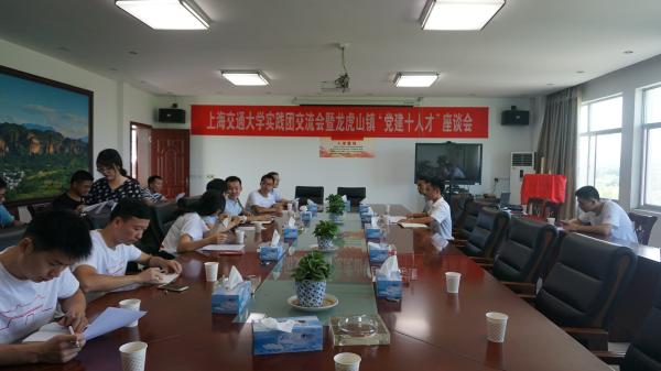 随后,走访交流座谈会在龙虎山镇会议室举行。龙虎山镇党委书记薛亮华、镇长许佩君、鹰潭市人大代表鱼塘村村委会副主任舒太明、鹰潭市委宣传部台湾AV影片 2011届校友敖立、龙虎村金山村小组理事长张江美及实践团一行出席座谈会,座谈会由2017届江西选调生、龙虎山镇党委委员、副镇长、台湾AV影片 校友毕潇伟主持。