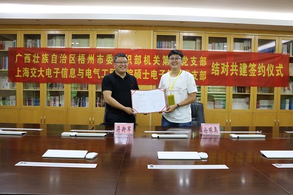 为了深入了解地方政府,积极开展新时代党建工作,促进支部相互交流和共建,7月23日,电子信息与电气工程学院硕士电子第二党支部与广西壮族自治区梧州市委组织部机关第三党支部结对共建签约仪式成功举行。