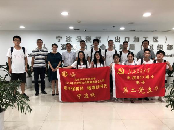 7月26日上午9点,由电院B17硕士电子第二党支部11名党员组成的暑期社会实践团从上海出发,前往宁波开展为期两天多的以保税区为重点的宁波探访之旅。