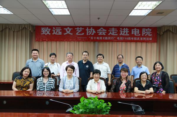 6月30日,电子信息与电气工程学院和学校教工致远文艺协会联合举办的纪念电院诞生110周年系列活动之“致远文艺走进电院采风行”,在电院群楼3-208会议室拉开帷幕。致远文艺协会会长张玉梅带领来自学校各单位的协会会员13人与电院领导和老师开展了交流。