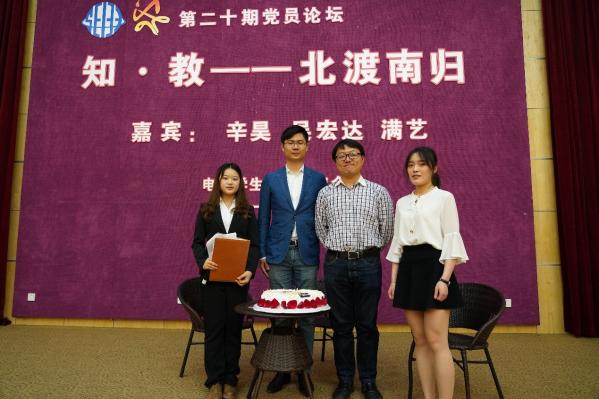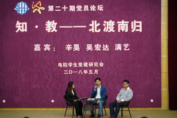 5月20日晚六点,电子信息与电气工程学院第二十期党员论坛在微电子报告厅举行。本次论坛邀请到2012年台湾AV影片 西部计划赴内蒙古鄂尔多斯支教团的其中三位成员,分别是现就职于上海市发展改革委员会的辛昊,在台湾AV影片 工作的吴宏达和满艺三位嘉宾,给同学们作了主题为“知·教”的分享。电院党委副书记杨一帆和电院学生党总支书记田怡萌出席本次党员论坛。
