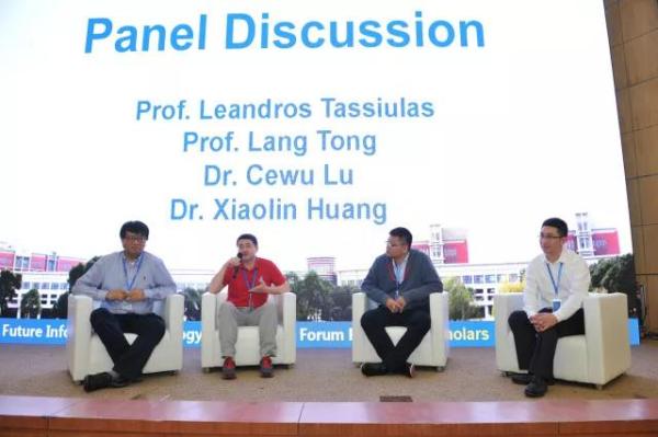 讨论环节,两位外籍教授与两位电院青年学者卢策吾和黄晓霖就大学生活、研究课题等问题发表了自己的观点。