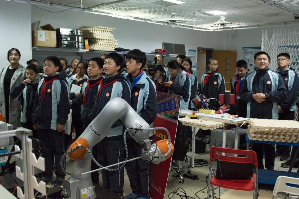 12月8日下午,交大二附中学生参观活动举行。百余名交大二附中的学生及部分学生家长参观了位于微电子大楼的感知与导航实验室、模拟射频集成电路中心及位于电信群楼二号楼的自主机器人实验室。而带领他们参观的志愿者,是二十名受聘为交大二附中班级辅导员的电院学生。