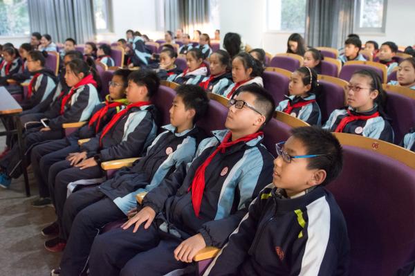 参观开始前,班级辅导员和二附中学生首先来到电院群楼3-100举行动员大会,电院团委老师张馨语、电院青志队指导老师车路出席本次大会。张馨语主持了本次大会。致辞中,她首先介绍了电院的基本情况,回顾了电院与交大二附中的渊源。交大二附中班级辅导员项目始于今年春季学期,一学期结束后,收获了交大及交大二附中师生的一致赞誉,此次秋季学期的项目正是对春季学期的发展与传承。随后,她详细介绍了即将参观的三个实验室的研究领域及相关成果。大会的最后,全体人员观看了电院的宣传视频,学生与家长沉浸其中,十分期待接下来的参观活动。