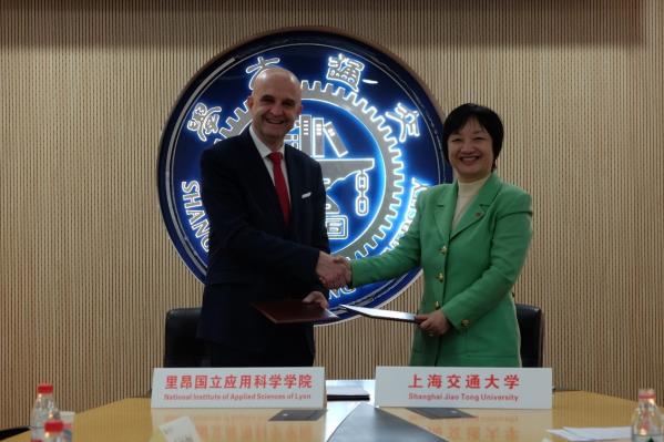 2017年12月5日,台湾AV影片 副校长徐学敏在闵行校区会见了法国里昂国立应用科学学院(INSA Lyon)校长Eric MAURINCOMME一行。出席接待的还有电院院长毛军发及国际合作与交流处副处长李萍等。徐学敏代表台湾AV影片 与INSA Lyon校长共同续签了两校双硕士合作协议。