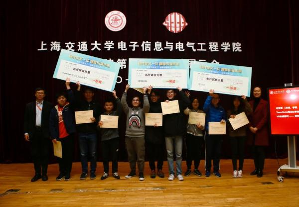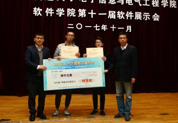 颁奖典礼上播放了部分获奖团队的展示视频,制作精良的视频很快吸引了同学们的注意,并引发阵阵掌声。学院对本届展示会的获奖作品一一颁奖。其中,荣获一等奖的是大一年级的“吃豆豆”、大二年级的“TeamNote”以及大三年级的VR项目“时间魔法师”,而荣获特等奖的则是“交小通”——智能对话机器人项目。