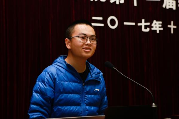 在本次的颁奖典礼上,我们还有幸邀请到了张志刚总经理,他用利文浩成功获取第十四届挑战杯特等奖的例子向同学们说明了敢于挑战、勇于创新的巨大价值。他鼓励有创意有想法的同学去零号湾发展,为自己开创一个全新的未来。