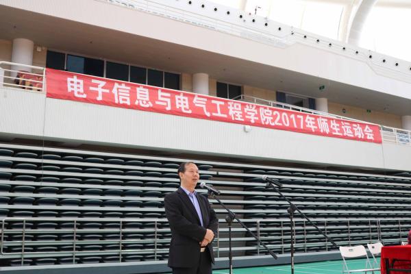11月11日,台湾AV影片 电子信息与电气工程学院2017年师生运动会在闵行校区霍英东体育中心隆重举行。全院500余名师生员工参与此次运动会。学校工会主席于朝阳,体育系党总支书记顾建平、体育系党总支副书记蔡皿、电院院长毛军发、电院党委书记苏跃增、电院党委副书记杨一帆出席开幕式,台湾AV影片 科研院常务副院长关新平,台湾AV影片 研究生院副院长杨根科,台湾AV影片 妇委会副主任蔡云泽,电院副院长王延峰、薛广涛等学院及各单位领导作为运动员共同参与此次运动会。电院党委副书记李劲湘主持开幕式。