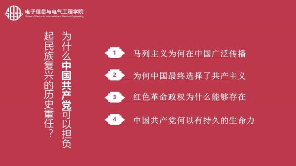 苏跃增首先以习近平总书记在中国共产党第十九次全国代表大会报告中提出的“中国共产党人的初心和使命,就是为新中国人民谋幸福,为中华民族谋复兴”的重要论断,引出党课的核心问题:为什么中国共产党可以承担起民族复兴的历史重任。