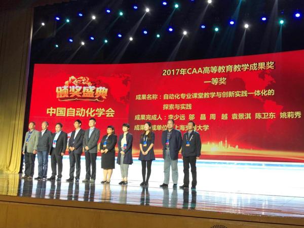 2017年10月20~22日,由中国自动化学会(以下简称学会)主办,山东大学、山东省自动化学会承办的2017年中国自动化大会暨国际智能制造创新大会(CAC)在济南举行,来自国内外的专家学者2000多人参会。会议期间,活动组委会进行了高教成果奖等奖项的颁奖活动,自动化系李少远教授等主持的项目获得“2017年CAA高等教育教学成果奖一等奖”。同时,李少远、陈坚还荣获“2017年度CAA优秀学会工作者”荣誉称号。
