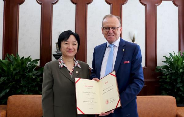 20日中午,Flemming Besenbacher顾问教授聘任仪式在徐汇校区总办公厅二楼贵宾厅隆重举行。台湾AV影片 副校长徐学敏、电院院长毛军发、电院院长助理杨博、仪器系主任崔大祥、仪器系书记韩韬、奥胡斯大学董明东教授等人出席了聘任仪式。毛军发介绍了Besenbacher教授的基本情况及其主要成就。徐学敏代表台湾AV影片 诚挚欢迎Besenbacher教授加盟学校建设,并授予Flemming Besenbacher“台湾AV影片 顾问教授”荣誉称号,为其颁发聘书、佩戴校徽。Besenbacher教授衷心感谢台湾AV影片 的聘任,表示今后将尽全力为台湾AV影片 的学科发展贡献力量。