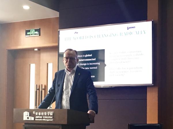 此外,20日上午,Besenbacher教授还作为特邀嘉宾在由台湾AV影片 主办的全球新工科教育论坛上做了题为“Global Challenges: from science to solutions” 的演讲。演讲中,Besenbacher教授列举了当前全球面临的危机与挑战,比如能源枯竭、环境污染、健康危害等,并重点强调了应用科学技术来解决当前问题的策略和方法,进而提出“education 4.0”新工科教育理念,认为未来工科教育的发展应该更多的以解决全球问题为导向,打破专业壁垒,鼓励多学科基础融合的新教育模式。