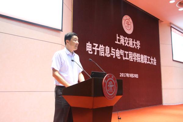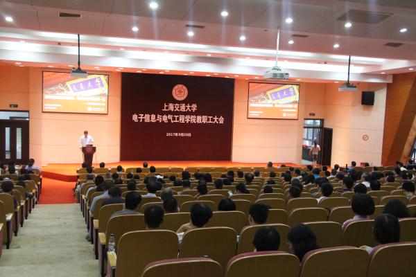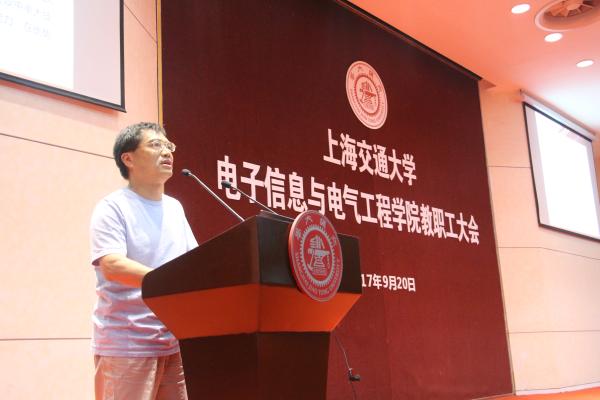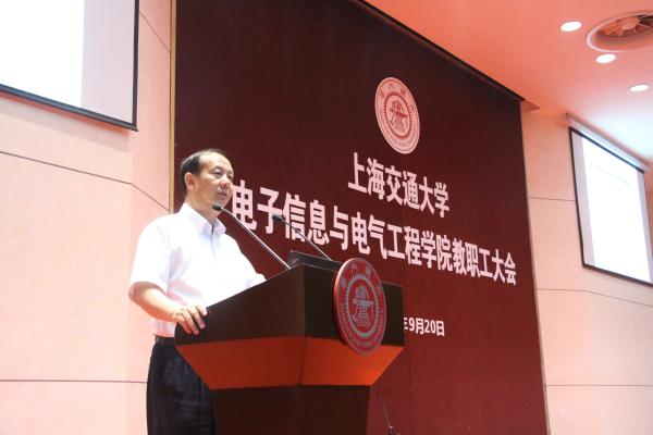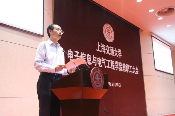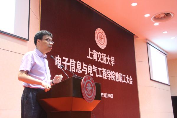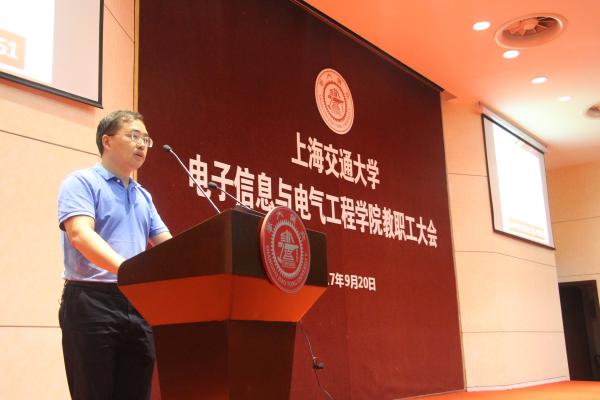 9月20日下午,电子信息与电气工程学院教职工大会在陈瑞球楼报告厅召开,校党委副书记顾锋、电院领导班子成员、所属单位党政负责人、全院教职员工共计300余人参加会议,会议由电院党委副书记杨一帆主持。