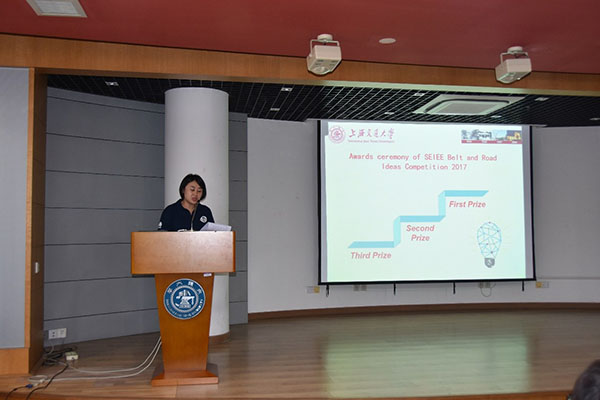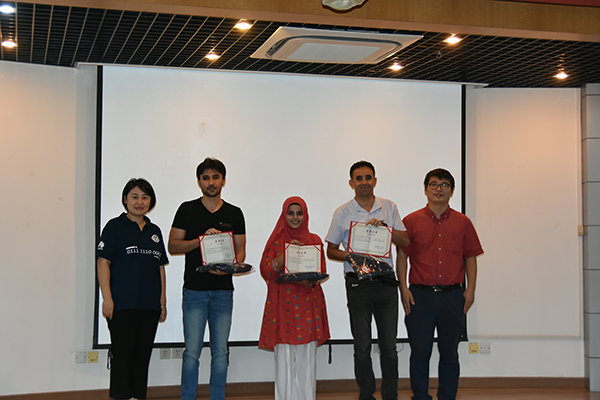 中场举行了2017年电院留学生一带一路征文比赛的颁奖仪式,李劲湘为一、二等奖进行颁奖,杨旭波为三等奖颁奖。