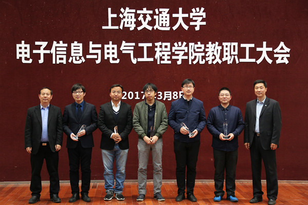 为树立典型、表彰先进,传递正能量,本次大会增加了表彰先进集体和个人的环节,会上,主持人宣读了2016年电院优秀教师代表名单,并由学院领导向获得国家、省部级人才计划和国家、省部级奖励及一级学会奖励的教师颁发纪念奖杯。