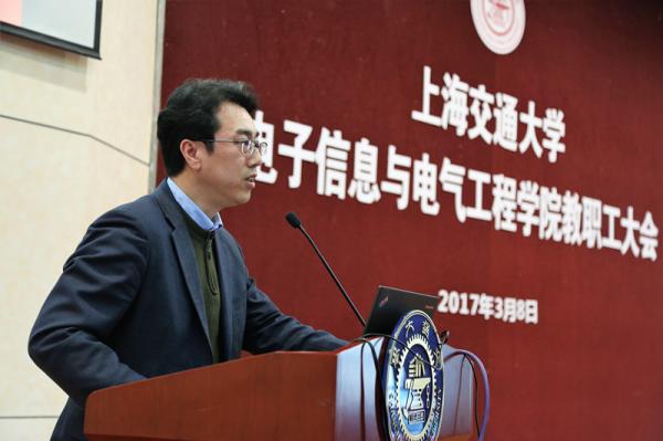 3月8日,电子信息与电气工程学院教职工大会在陈瑞球楼100号报告厅召开。电院领导班子成员、所属单位党政负责人等三百余名全院教职员工参加会议,会议由电院党委副书记杨一帆主持。