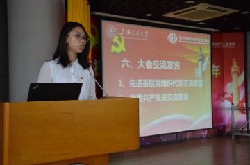 信安学院硕士生罗亚楠代表优秀共产党员发言。她回忆了参与学生党建工作的经历,并承诺将继续为学生党建工作贡献青春。