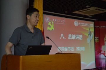 苏跃增发表总结讲话,他表示学院的大跨步发展凝聚了所有电院人的心血与汗水,智慧与力量,并提出了三点工作上的要求:第一,继续贯彻党中央和学校的部署,深入践行“两学一做”;第二,坚持改革创新,着力做好抓基层、打基础的工作,加强新形势下的基层党建工作;第三,规划十三五,对接国家重大战略需求,助推学校和学院一流建设。