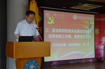 71日下午,值此建党95周年之际,电院在3-200号报告厅召开庆祝中国共产党成立95周年暨表彰先进大会校党委常务副书记郭新立出席大会,校党委常委、组织部长顾锋,电院院长毛军发,学院党委书记苏跃增等学院领导及近百名党组织和党员代表参加。