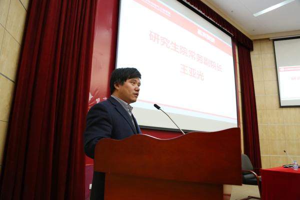 在主题报告前,王亚光为论坛开幕式致辞。他提到,研究生教育处于高等教育的最高层,提升研究生教育的质量在落实国家“科教兴国”战略中处于特殊的地位,研究生院将努力为研究生同学提供形式多样的学术交流机会,激发科研灵感,启迪人生智慧。王亚光还对广大研究生同学提出期望,希望大家能够利用博士生学术论坛的平台,积极参与,乐于分享,勇于挑战,在学术研讨中锻炼能力,激发灵感。