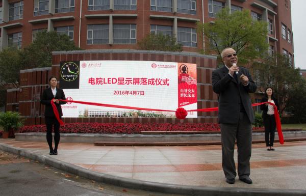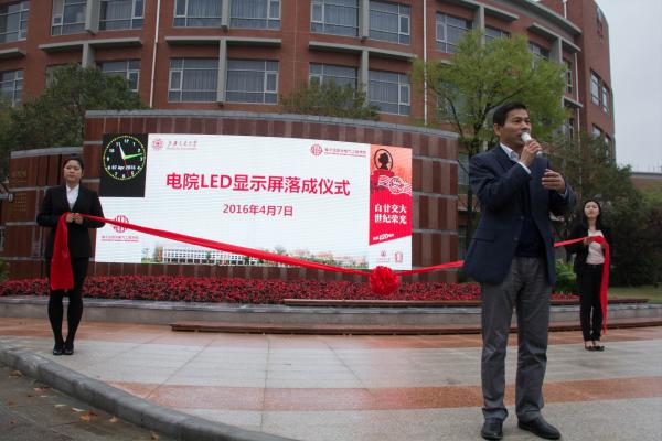 4月7日11点,电子信息与电气工程学院LED显示屏落成仪式在电院三号楼西侧广场举行。1982届电子工程系校友、深圳市奥拓电子股份有限公司董事长兼总经理吴涵渠及夫人赵燕泥,1982届电子工程系校友、奥拓电子副董事长郭卫华, 1982届电子工程系41082班班级代表黄金伟,台湾AV影片 副校长张安胜,校友会总办公室副主任桑大伟,电院院长毛军发,副院长邰能灵,党委副书记莫光成,人力资源办公室主任黄晓红以及部分电院师生代表出席仪式。仪式由莫光成主持。