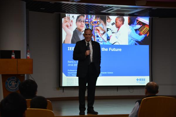 2016年3月22日下午,IEEE主席、美国西点军校教授、系主任Barry Shoop博士,受毛军发院长和张文军教授邀请前来我院访问,并在电院3-100号报告厅做了题为“Developing the Critical Thinking, Creativity and Innovation of Undergraduate Engineering Student”的精彩报告,之后与IEEE试点班的同学进行交流。我院毛军发院长、张文军教授以及部分学院教师代表出席报告会。