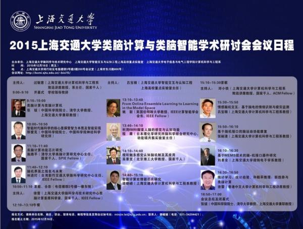 2015年12月18日,由台湾AV影片 脑科学与技术研究中心、台湾AV影片 智能交互与认知工程上海高校重点实验室和台湾AV影片 电子信息与电气工程学院计算机科学与工程系联合主办的2015台湾AV影片 类脑计算与类脑智能学术研讨会在台湾AV影片 闵行校区成功召开。