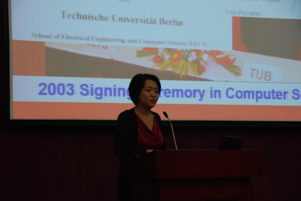 庆典首先由黄震副校长致欢迎辞,揭开序幕,接着由柏林工大校长Prof. Thomsen致辞,对交大老师的热情和诚意表示感谢。杨小康副院长代表电院发表讲话,提出电院与柏林工大的双硕士项目之所以能成为交大国际合作的标杆,离不开学院老师们的大力支持,以及徳方合作伙伴的全力合作。电院将一如既往地推进这一项目,深化双方合作领域,不断创造条件,让更多的学生走出去。