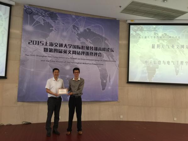 此次评选活动由校党委宣传部和国际合作与交流处联合主办,自5月23日启动,历经84天,共有全校39家单位参与。电院英文网站与其它14家网站一起在首轮网络投票中脱颖而出,进入到最终答辩环节。经过紧张激烈的现场微信投票以及精彩纷呈的ppt讲演,电院共摘得了“最具人气英文网站”以及“最佳英文网站”两项大奖,也成为现场唯一获得两个奖项的单位。