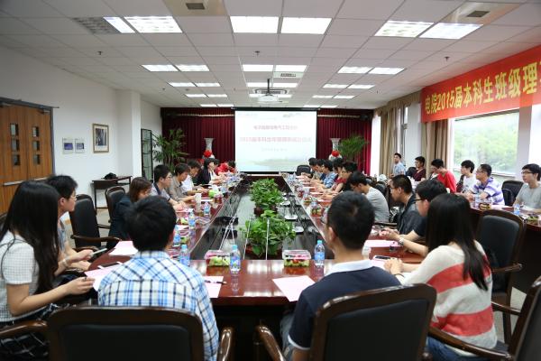 电子信息与电气工程学院2015届本科生班级理事会成立仪式6月18日上午在电信群楼3-208举行。学院党委副书记杨一帆,副院长邰能灵,党委副书记李劲湘,学院就业办公室主任林玲,人力资源与国际事务办公室主任黄晓红,就业办公室思政教师薛秀珍,电院校友联络人田琳等出席,全体2015届本科生班级理事参会。会议由田琳老师主持。