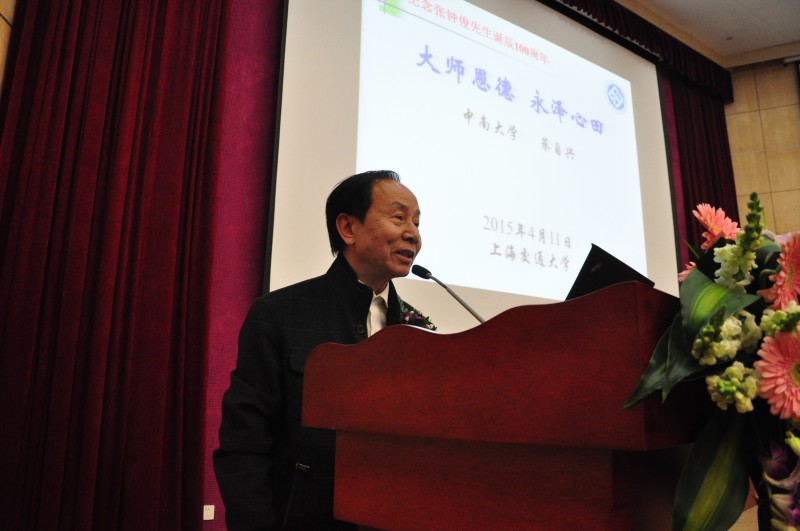 会议伊始张杰校长向大会致辞。他在回忆中说,当年他的办公室和张先生雕塑非常近,每次经过时都会因念起张先生的事迹而振奋从而更加用心地工作。他相信张先生热爱祖国,奉献社会,用于开拓,不断创新的精神会激励所有的交大学子,这种精神连同张钟俊院士的名字永远铭刻在我们的心中。