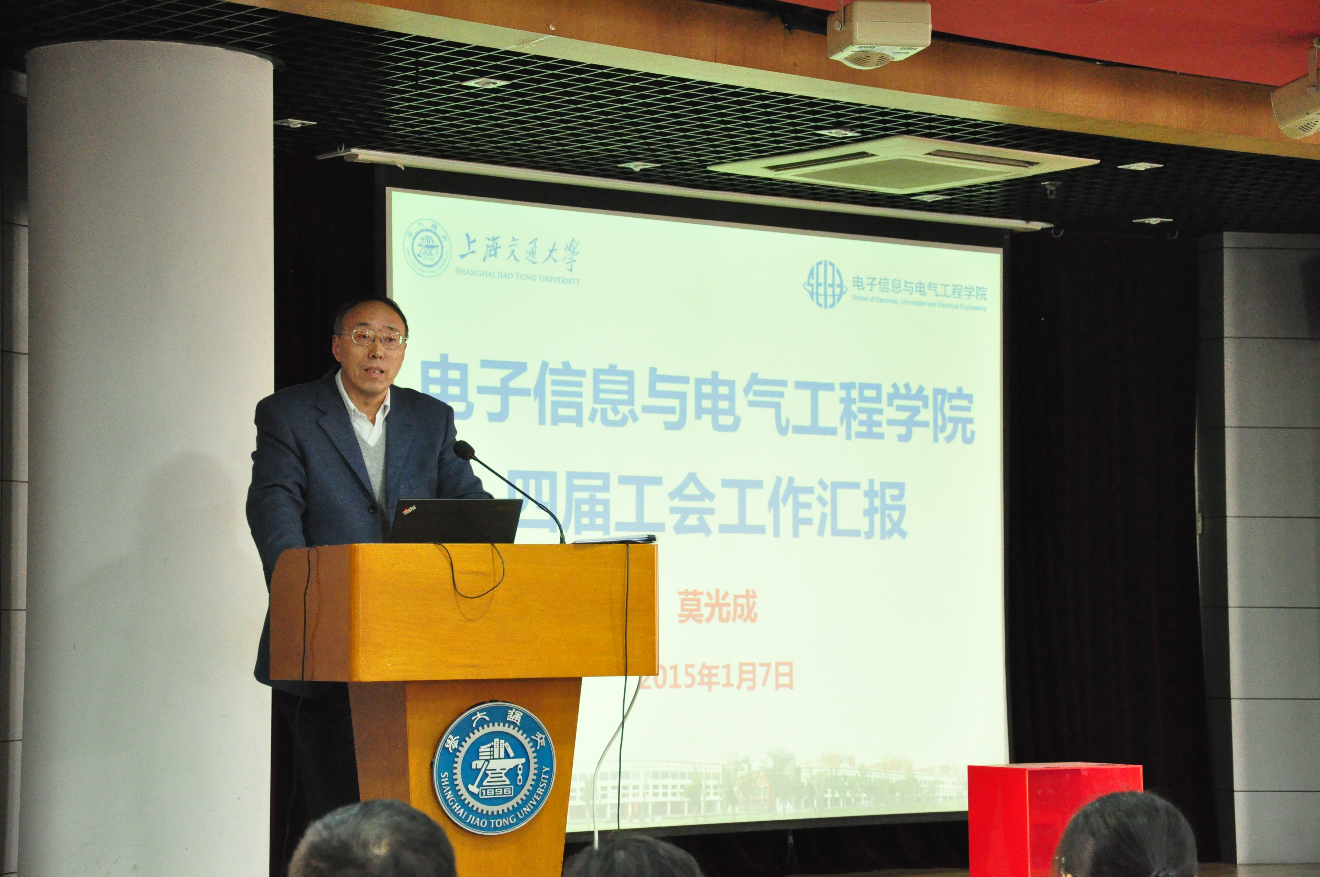 2015年1月7日下午,电子信息与电气工程学院五届教代会暨工代会第一次会议在电院群楼3-200号报告厅举行,学院教代会代表、院系党政领导和办学骨干等110余人参加大会,校工会主席贾金平、组织部副部长吴映强应邀出席会议。会议由学院工会副主席袁景淇主持。